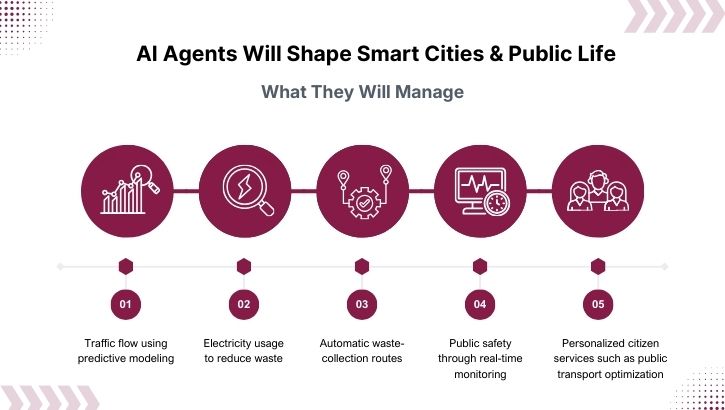 For example, if traffic congestion increases, intelligent systems will instantly adjust signals and redirect vehicles for faster flow. Energy use in buildings will be monitored and adjusted to reduce consumption.