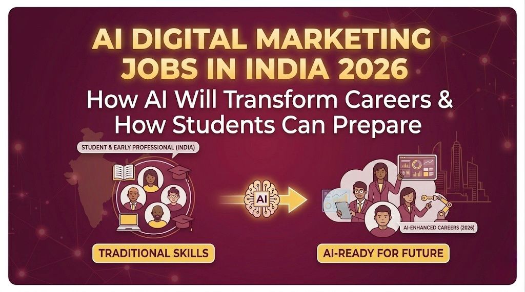 For students and fresh graduates, this shift creates a clear opportunity but only for those who prepare early. Digital marketing careers are not disappearing; they are evolving. This blog explains how AI in digital marketing India is reshaping the job market, what future roles will look like, and how students can build the right skills to stay relevant in 2026 and beyond.