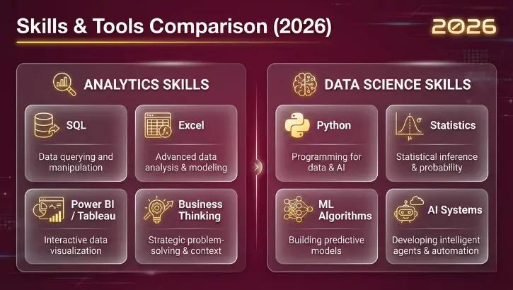 This blog cuts through the noise by clearly comparing roles, skills, salaries, learning curves, and career stability so you can choose the right data science vs data analytics career path in India for 2026 and beyond.
