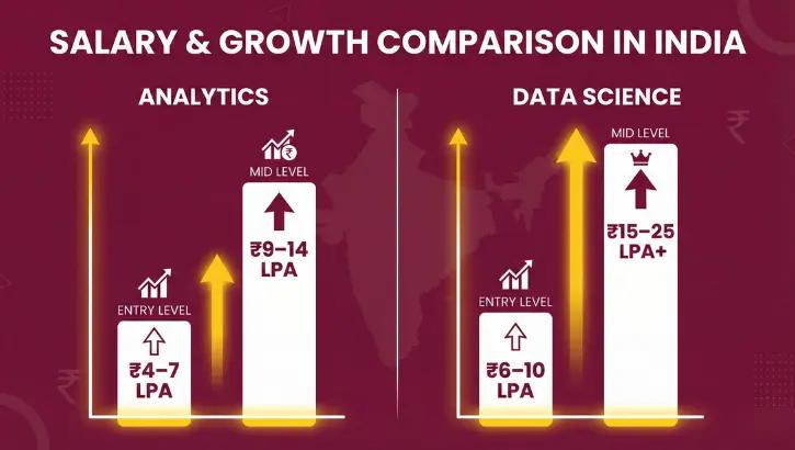 In India’s evolving data landscape, salaries in data science and data analytics reflect not just demand but how skills, role depth, and experience shape your earnings trajectory. In 2026, both fields pay well, but data science generally offers a steeper growth path due to technical depth and demand for predictive/ML skills.