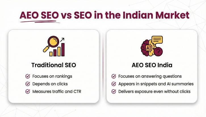 | Focus Area | Traditional SEO | AEO SEO India |