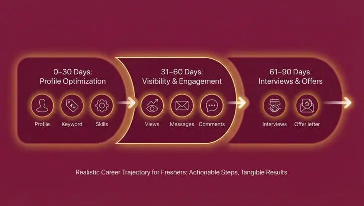 This is one of the most common questions Indian freshers ask and the honest answer is: it depends on how strategically you use LinkedIn. While there’s no overnight success, LinkedIn data and recruiter feedback suggest that freshers who actively optimize their profiles and network consistently see results within 30–90 days.