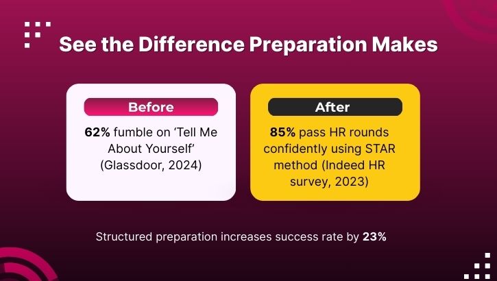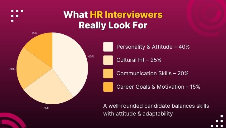 HR interviews are usually the first or second round in the hiring process. Unlike technical rounds that assess your skills, HR interviews evaluate:
