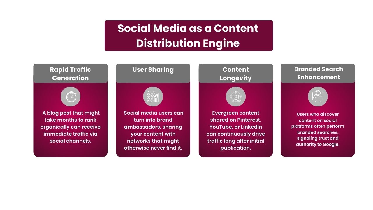 Publishing content is just the first step distribution is what ensures it reaches the right audience. In the context of social media and SEO, social media platforms function as powerful content amplifiers, expanding reach, engagement, and visibility.