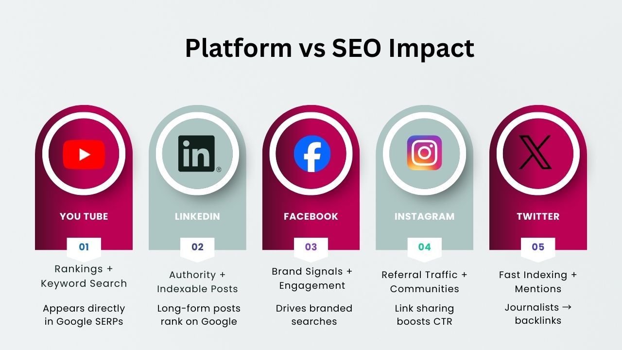 Extra Note: Social media doesn’t replace SEO but enhances its impact by amplifying content reach, boosting authority, and accelerating backlink acquisition.