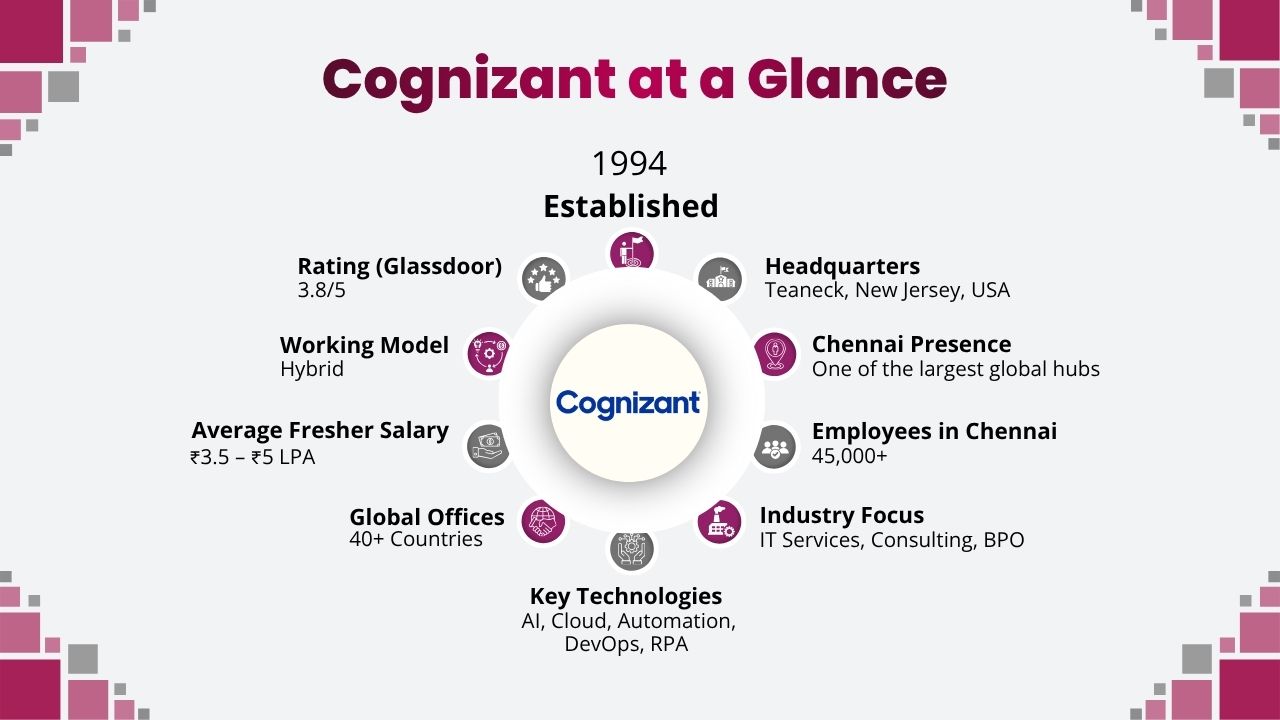 Cognizant is one of the largest IT employers in Chennai and a global leader in digital services, application development, cloud modernization, and enterprise transformation. Known for its strong hiring presence, domain expertise, and large-scale delivery centers, Cognizant offers excellent opportunities for freshers and experienced professionals in software engineering, testing, cloud, analytics, and business operations. Chennai is one of Cognizant’s biggest global hubs, hosting diverse projects across BFSI, healthcare, retail, and telecom.