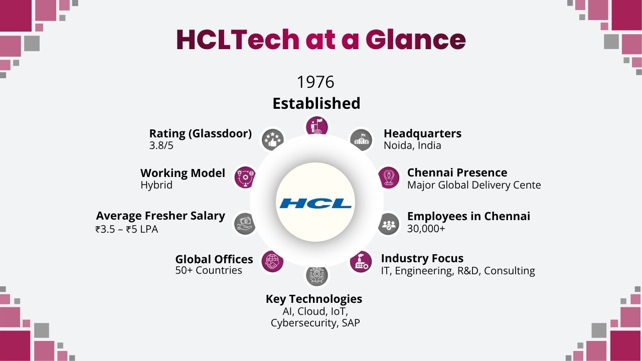 HCLTech is one of India’s most powerful IT and engineering services organisations with a strong global footprint and a deep legacy of innovation. Chennai is one of HCLTech’s oldest and largest delivery hubs, contributing significantly to engineering R&D, digital transformation, cloud, AI, application modernization, and enterprise IT services. Known for its stable work culture, engineering excellence, and strong fresher hiring programs, HCLTech remains one of the top IT employers in Chennai for software developers, full-stack engineers, data professionals, cybersecurity experts, and cloud specialists.