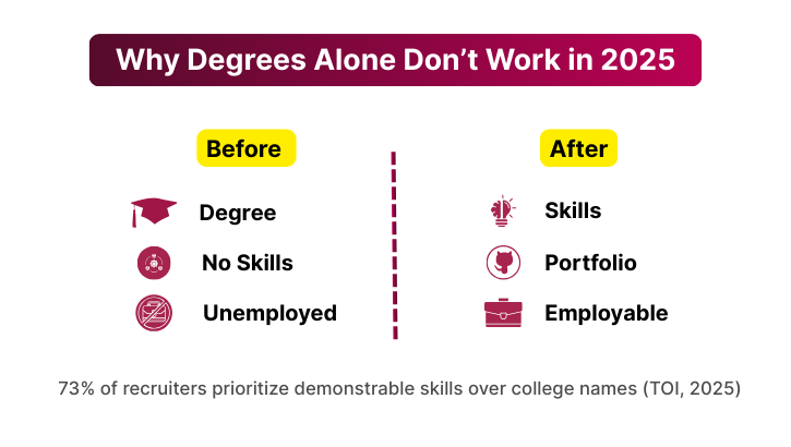 For decades, degrees were seen as the golden ticket. Score good marks, collect your certificate, and a job would follow. But in 2025, that equation has broken down.