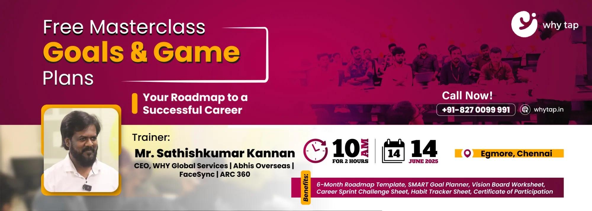 - Led by Sathishkumar Kannan, Founder & CEO of WHY TAP and WHY Global Services, this session is your opportunity to define your goals and build a clear, actionable plan to achieve them.